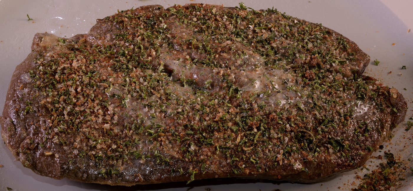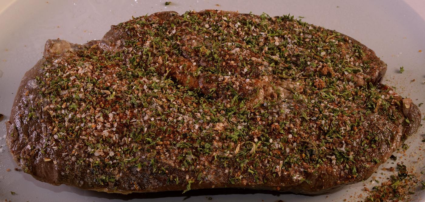 Spray with oil again--this prevents the herbs in the seasoning from scorching. Set aside to give the coating a few minutes to attach itself. Juices