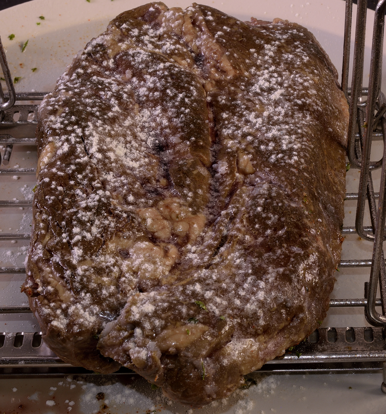 Turn the roast over onto a rack with the unseasoned side up. We used a Lipavi L10. These stainless steel racks are intended for sous vide processing, but are great for smoking, roasting, and even refrigerated storage--water proof, dishwasher proof and smoker/oven proof.