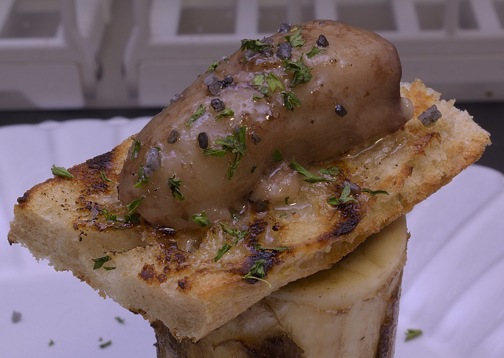 For the purist, the perfectly intact section of marrow creates a stunning visual effect---a classic, slightly sinful appetizer.