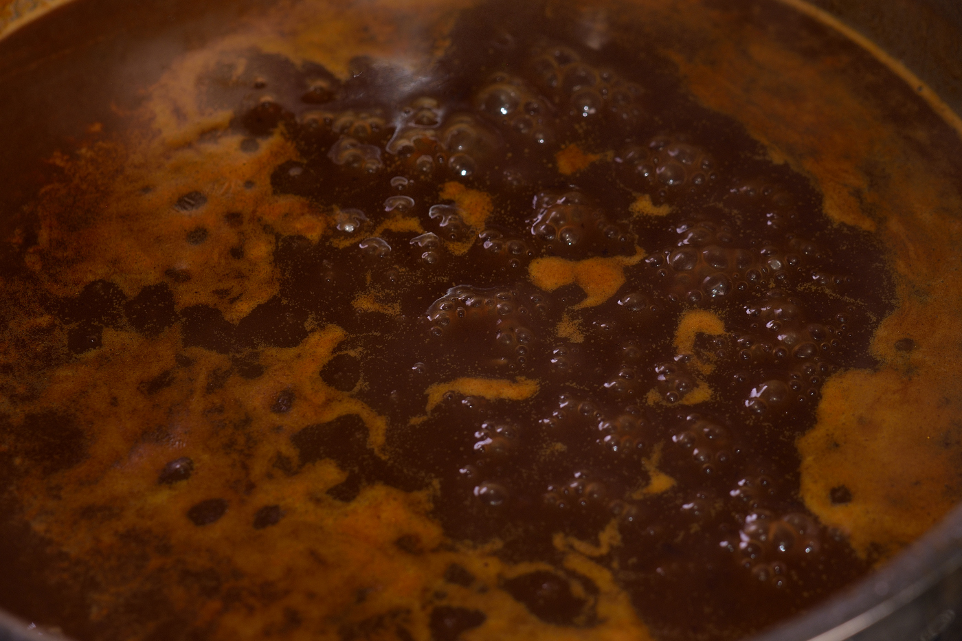 Continue stirring as the paste dissolves and the sauce comes to a simmer.