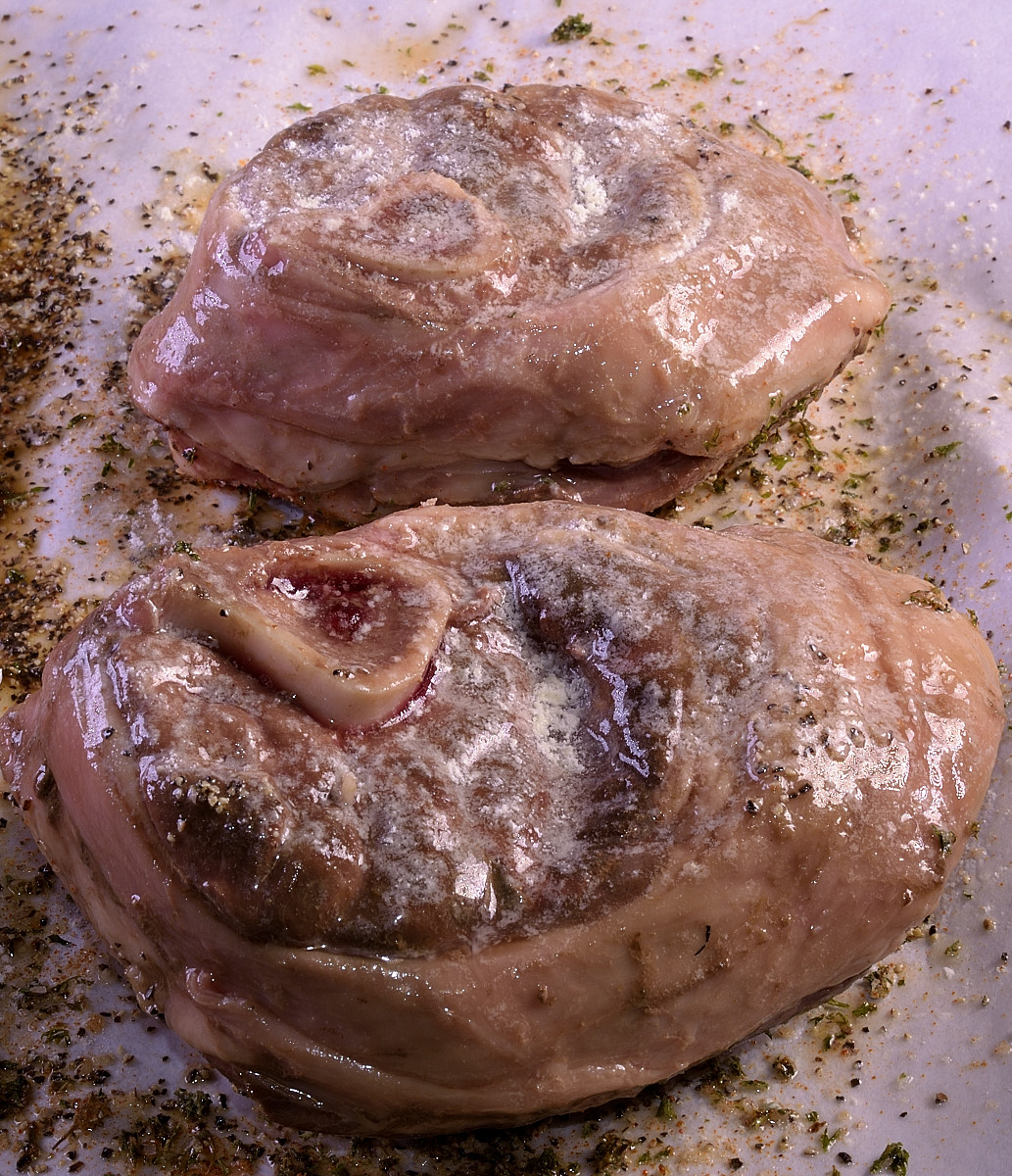 Oregon lamb shank, sliced into four portions, 1 each/person.